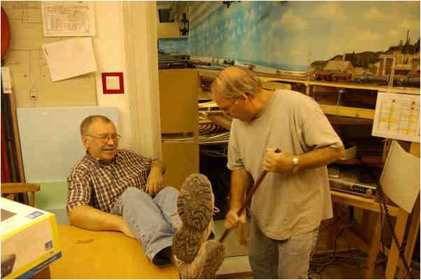 Wir alle waren auf den ersten manuellen Test sehr gespannt. Stephan mit Wartungstrupp mussten an diversen Stellen nacharbeiten: Stromversorgung, Weichentausch, Decodertausch usw.