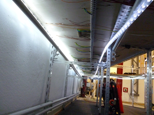 Spiralen dienen zur Aufnahme von Kabeln, so dass das Verlegen einfacher möglich ist und auch sauber aussieht. Da es unter der Anlage dunkel ist, wurden LED-Leisten verlegt, damit wir beim Arbeiten besser sehen können.