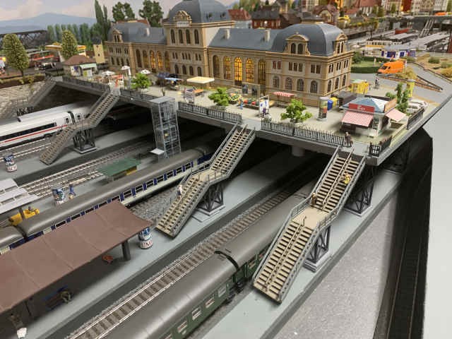Werner hat neben dem Bahnhofsvorplatz auch den Abgang zu den Gleisen sehr schön gestaltet. Hier gibt es eine kleine Bar und auch einen kleinen Markt. Somit kann sich jeder Reisende entsprechend mit Speisen, Obst und Getränke eindecken, denn die Preise in den Zügen sind doch etwas teuer. Ein moderner Aufzug darf natürlich auch nicht fehlen.