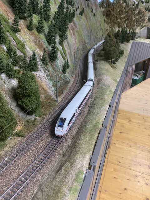 Also blieb uns nichts anderes übrig, als alle Loks neu einzumessen. Hierbei wurde auch noch einmal die maximale Streckengeschwindigkeit unserer Anlage definiert. Sie liegt bei 120 km/h, auch für einen ICE, da wir keine Neubaustrecke auf unserer Anlage vorweisen können.