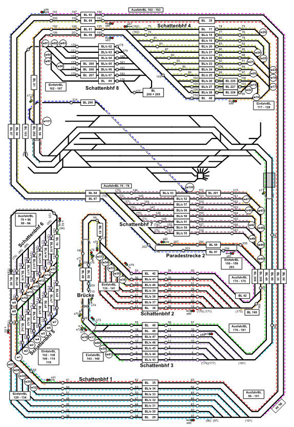 In diesem Zusammenhang wurde auch bemängelt, dass noch zu wenig Abstellmöglichkeiten für die vielen Züge vorliegen. Also müssen einige lange Schattenbahnhofs-Gleise in zwei Abschnitte unterteilt werden, so dass zwei Kurzzüge hintereinander abgestellt werden können.
