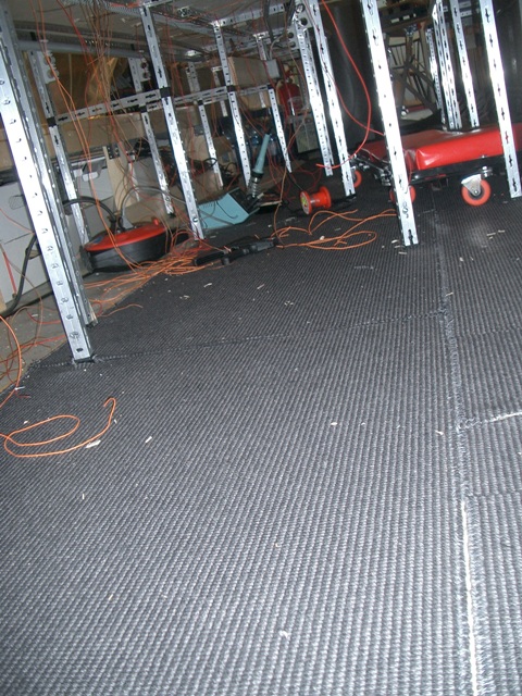 Hans hat unterhalb der Schattenbahnhofsebene Teppichboden verlegt, damit wir angenehmer unter der Anlage kriechen und die notwendigen Verkabelungsarbeiten deutlich entspannter durchführen können.