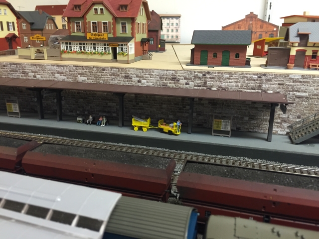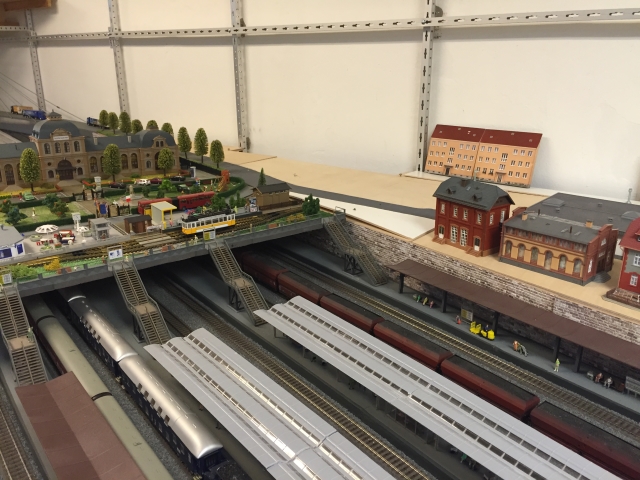 Hier ein Überblick über die Bahnsteige der einen Seite unseres Hauptbahnhofs Schöfferstadt und die Treppen zum Bahnhofsvorplatz. Das sieht doch insgesamt sehr gut aus. Werner ist halt ein Künstler.