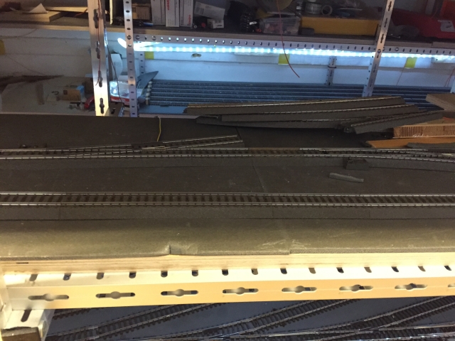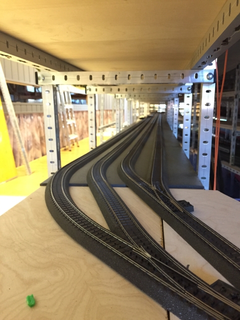 Die Zufahrt zum Schattenbahnhof sowie drei Schattenbahnhofsgleise für längere Züge sind schon fertig verlegt.