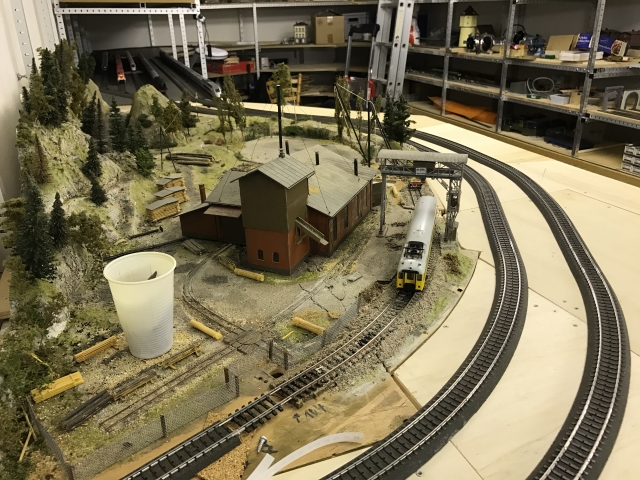 Hinter dem Sägewerk richtete Volker und Gerd auch gleich einen kleinen Schattenbahnhof mit einer Kehre ein, so dass dann wieder der Hauptbahnhof angefahren werden kann.