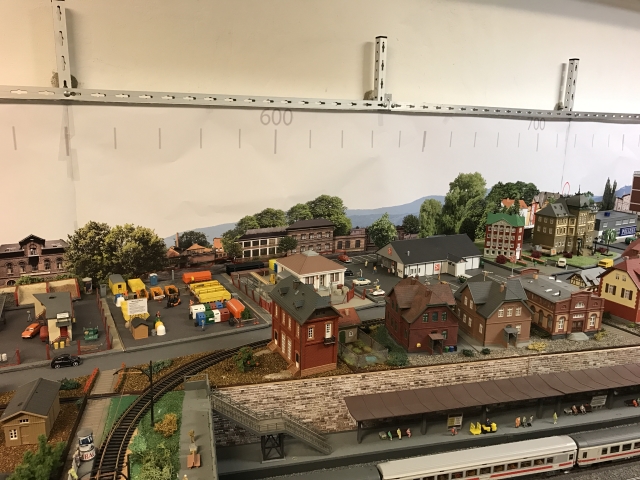 Der Preiserlein-Bürgermeister von Schöfferstadt hatte eine Beschwerde an den Vorstand unseres Vereins gerichtet. Er fand die kahle weiße Wand als Hintergrund nicht angebracht, sondern er forderte einen passenden Hintergrund. Na ja, der Vorstand hat dann auf Betreiben von Stephan entschieden, ein der Realität angepasstes Hintergrundbild anfertigen zu lassen und eine vorläufige Version montiert. Der Bürgermeister war sehr beeindruckt, hat dann aber noch ein paar Änderungswünsche geäußert, die in den nächsten Wochen umgesetzt werden sollen. Wer sich die nachfolgenden Bilder genau anschaut, kann den vorläufigen Hintergrund bewundern.
