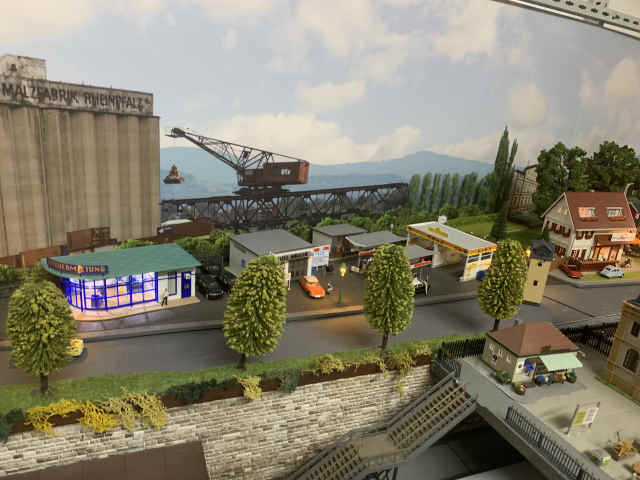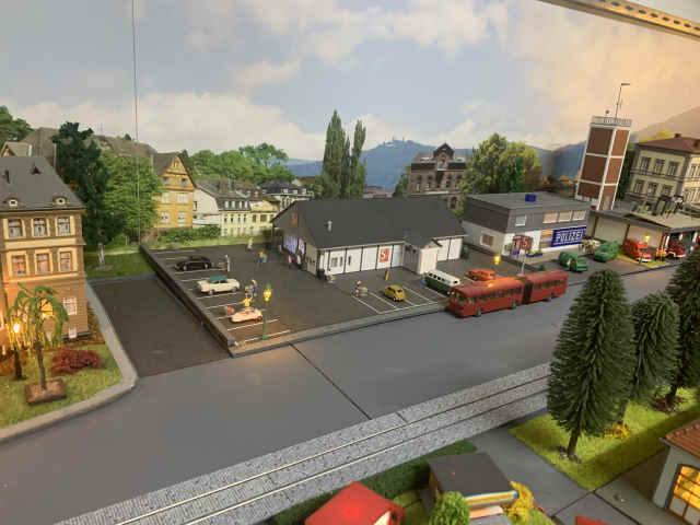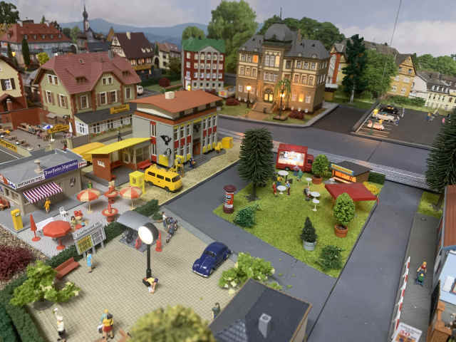 Natürlich darf auch ein Schnellimbiss nicht fehlen. Anreisen kann man entweder mit dem Auto, mit dem Bus oder mit der Straßenbahn. Allerdings wollten die Bürger von Schöfferstadt eine historische Straßenbahn. Kein Problem für den Bürgermeister, denn er hat gute Kontakte zum Landrat. Werner hat hier sein ganzes Können gezeigt. Es sieht wirklich sehr realistisch aus.