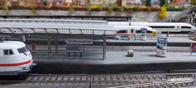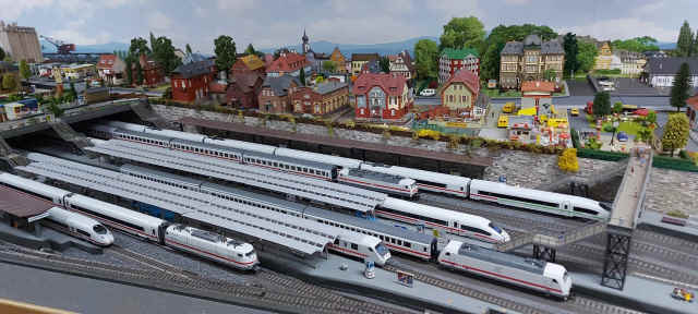 Wir haben aber auch viele moderne Züge zusammengestellt und lassen diese Züge sehr gerne über unsere Anlage fahren. Speziell die Kinder, die unsere Anlage besuchen, kennen diese Züge. Dazu gehören nicht nur die unterschiedlichen ICEs, sondern auch ICs mit unterschiedlichen Lok-Bespannungen.