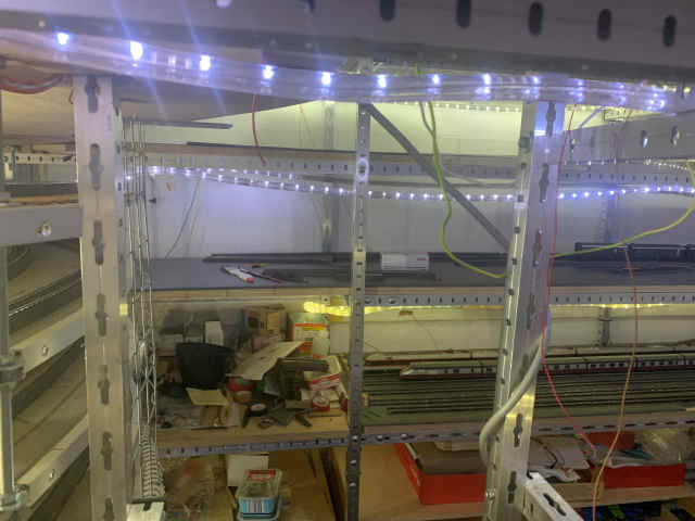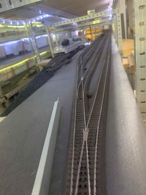 Leider müssen wir noch einmal Änderungen am Schattenbahnhof der Ebene -2 vornehmen. Zum einen wollen wir hier mindestens ein weiteres Abstellgleis einbauen. Allerdings sind auch Optimierungen für die Zu- und Abfahrt im Schattenbahnhof erforderlich. Volker und Jann arbeiten hier intensiv daran.